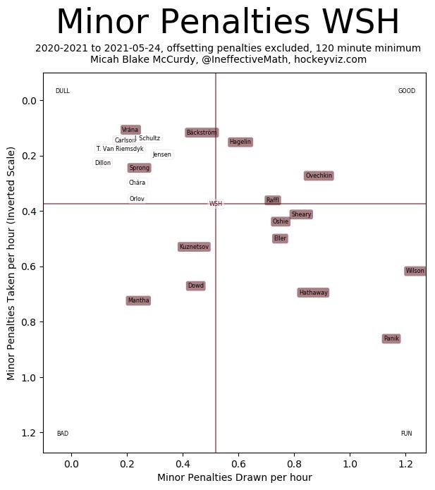 Second, Nic Dowd takes too many penalties for a fourth line player. While his overall impact on the team is a net-positive, it sure would be nice if he didn’t have a negative penalty differential this season, and also avoid what felt like 3,000 offensive zone penalties last season. As you can see, Dowd's penalty differential was indeed bad in 2020-21